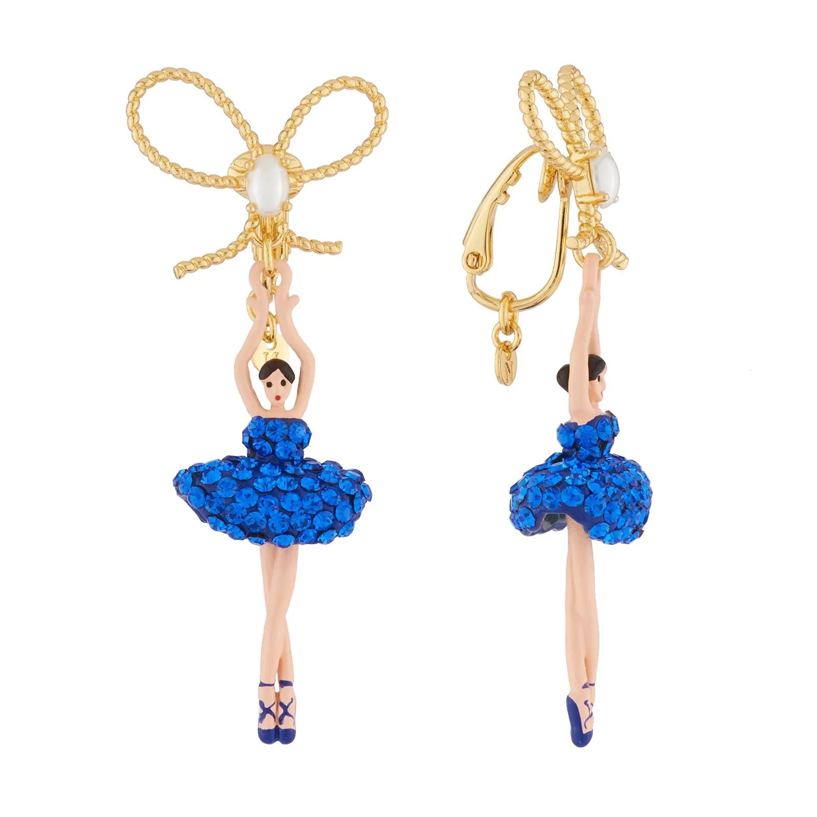 Introducing the Pas de Deux Lux Sapphire Earrings by Les Nereides. These exquisite earrings are inspired by the graceful ballerinas of the Opera de Paris. Crafted with attention to detail, they feature gold plated brass (18k), rhinestone, pearl, and hand painted enamel. The stud is made of surgical steel, ensuring comfort and durability. Measuring 5.5cm in length and 2cm in width, these earrings are a stunning addition to any outfit. Please note that for hygiene reasons, stud, hook, and sleepers earrings cannot be exchanged or returned. Each piece of jewellery is sent in its Les Nereides packaging, reflecting the brand's commitment to quality and elegance. Elevate your style with the Pas de Deux Lux Sapphire Earrings from Les Nereides.