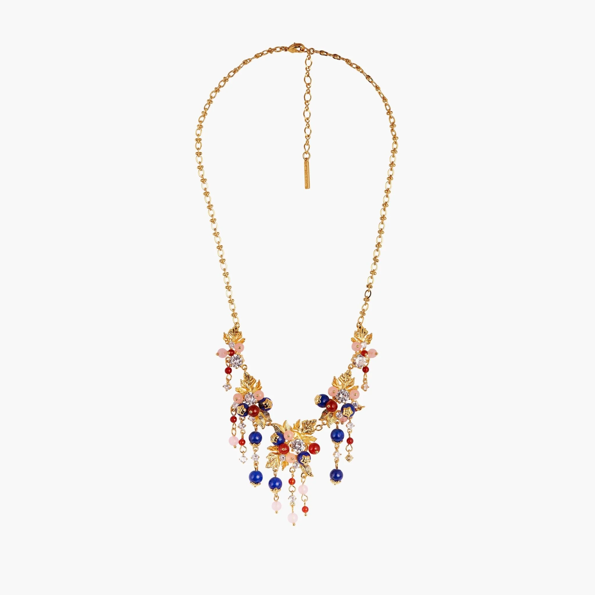 It's safe to say that this unique necklace from the Miraculous Harvest Collection won't leave you indifferent! A flagship piece of the Miraculous Harvest collection, la Maison Les Néréides offers you an enchanting piece worthy of high-end costume jewellery. Mounted on fine links, its gold foliage hosts bright diamond-like stones. Blueberries in lapis lazuli and carnelian stone follow one another to offer you an exceptional designer piece of jewellery.