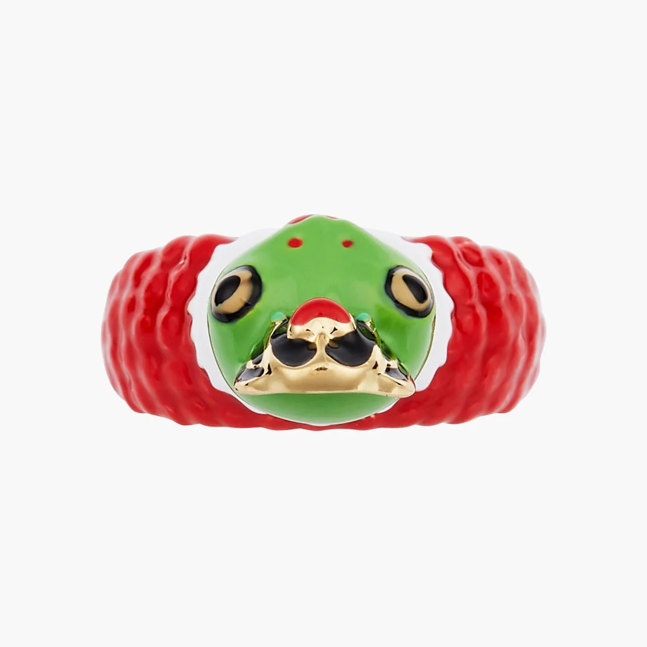 Introducing the Red Queen ring from Les Néréides Loves Animals' new N2 collection. This unique piece features the Red Queen transformed into an ugly toad, adding a whimsical touch to any outfit. Crafted from fine gold-plated brass and hand-enamelled figures, this cocktail ring measures 3.5cm in length, 2.2cm in width, and 1cm in depth, with a weight of 9.8g. Not only is this collection a wonderful gift option, but it also supports animal welfare. Les Néréides Loves Animals is a foundation created by Les Néréides in 2015, with 15% of each sale from this exclusive collection donated to shelters and charities worldwide. These organizations are selected for their values and dedication to the defense of animal rights. Learn more about our mission at lesnereideslovesanimals.org.