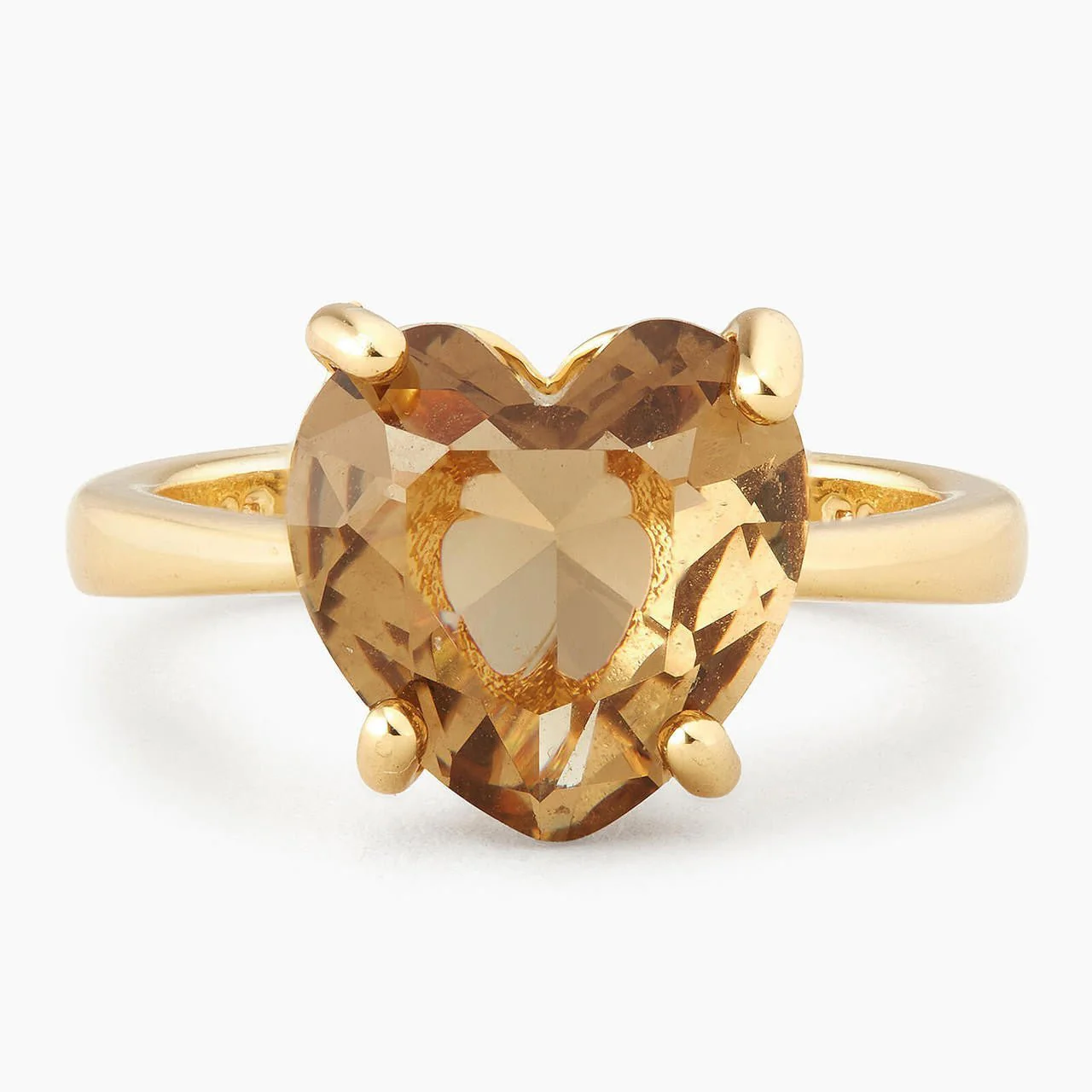 Golden Brown Diamantine Heart Solitaire Ring | APLD6171—