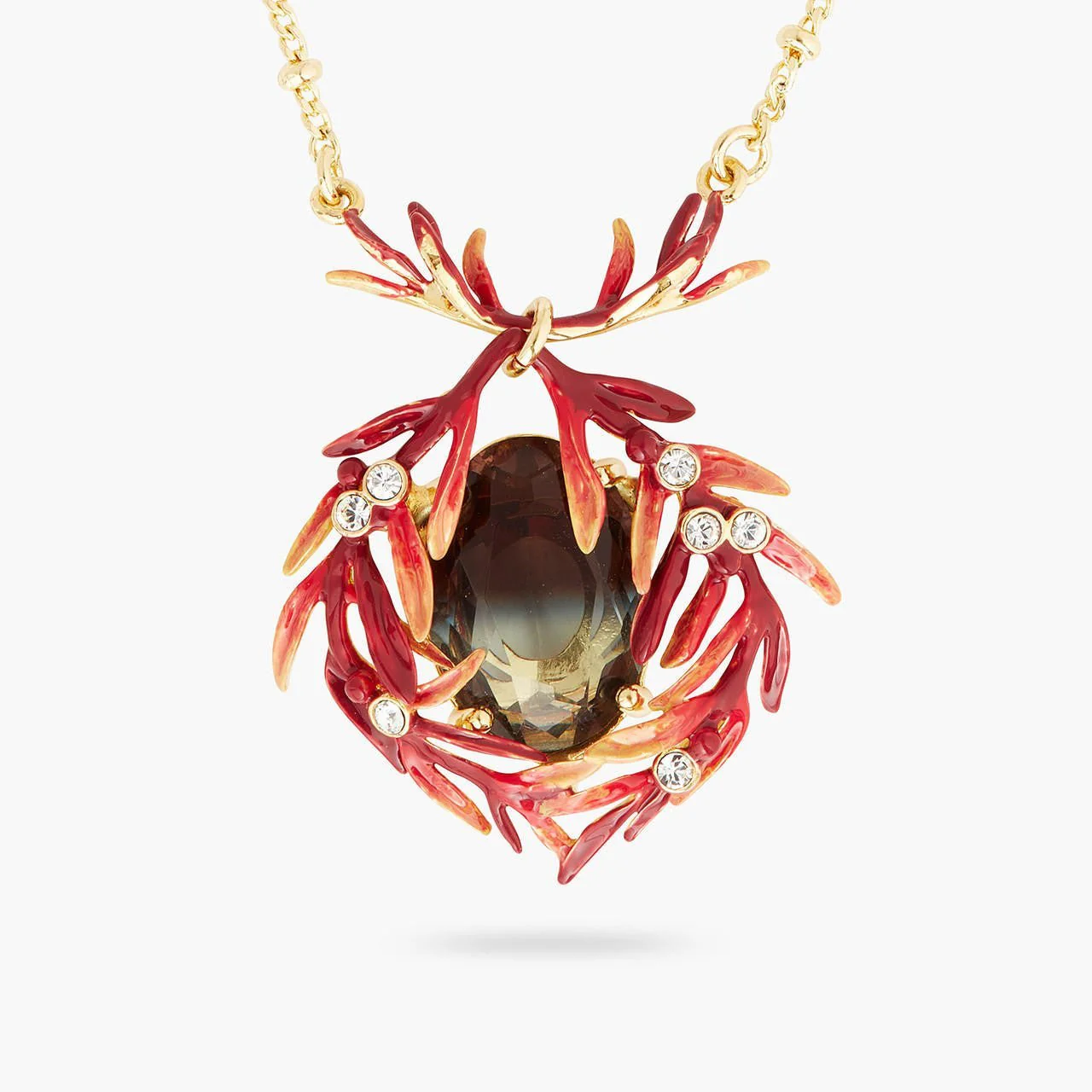 Foliage, Stones And Small Crystals Pendant Necklace | AQPS3051