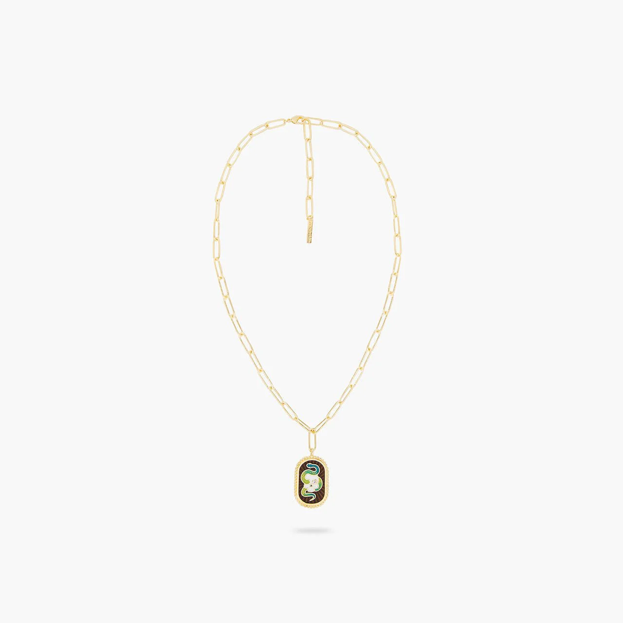 Gold-plated brass, hand-enamelled, rectanglular link chain and beaded contour