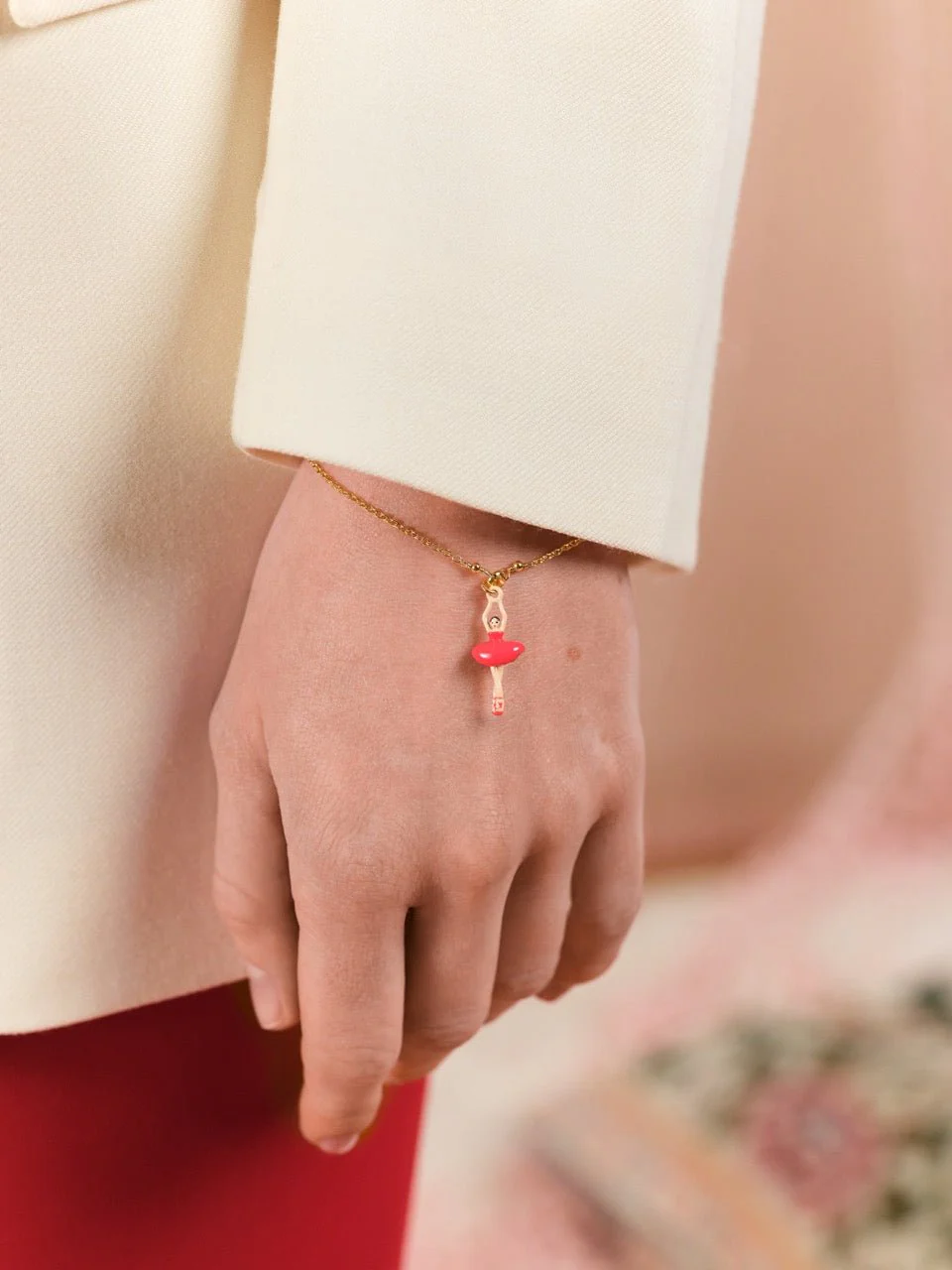 This Mini Pas De Deux bracelet and its ballerina charm celebrate ballet, a world of elegance dear to La Maison Les Néréides. The graceful posture and beauty of the costumes are highlighted in the jewellery set of the Mini Pas de Deux collection. Enhance your wrist with this jewel for women representing a dancer in pointe position, with a coral pink tutu delicately hand-painted by a craftsman.